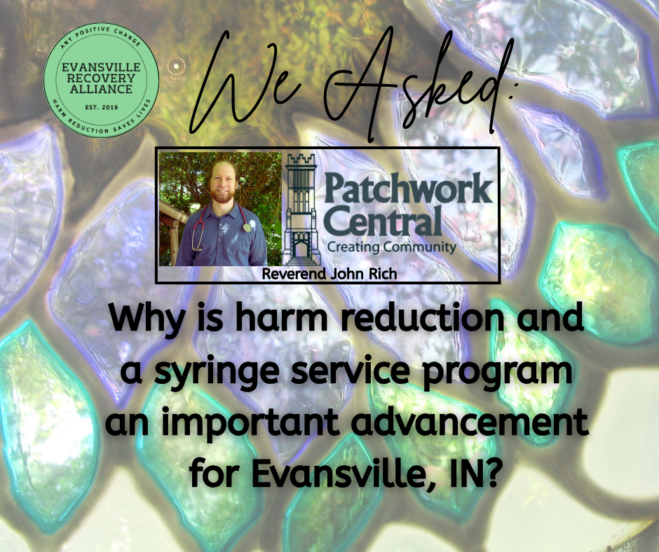 “I am honored to be one small part of this initiative. A Syringe Service Program (SSP) is long overdue in Evansville. It is an evidence-based, compassionate strategy for reducing the transmission of diseases such as HIV and Hepatitis C, as well as other harms both individual and communal. As a Registered Nurse and ordained clergyperson, I am committed to following the philosophy of Harm Reduction. Having a SSP in our city will be one vital expression of that philosophy.”